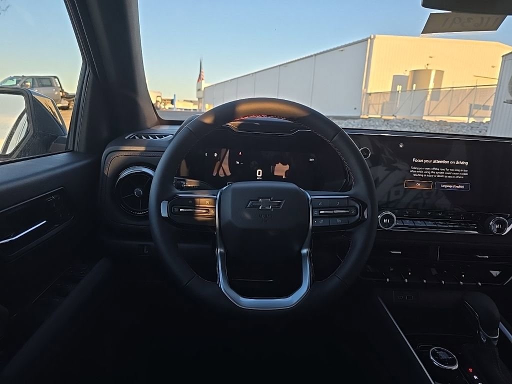 Black 2026 Chevrolet Colorado Z71 4WD 2.7L I4 Turbocharged DOHC 16V LEV3-ULEV50 310hp 8-Speed Automatic4WD, 3.42 Rear Axle Ratio, 4-Way Manual Passenger Seat Adjuster, 4-Wheel Disc Brakes, 6 Speakers, 6-Speaker Audio System Feature, 8-Way Power Driver Seat Adjuster, ABS brakes, Air Conditioning, Alloy wheels, AM/FM radio: SiriusXM with 360L, Apple CarPlay/Android Auto, Auto High-beam Headlights, Auto-dimming Rear-View mirror, Automatic Emergency Braking, Automatic temperature control, Brake assist, Bumpers: body-color, Chevy Safety Assist, Cloth/Evotex Seat Trim, Compass, Delay-off headlights, Driver and Front Passenger Heated Seats, Driver and Front Passenger Ventilated Seats, Driver door bin, Driver Memory Settings, Driver Seatback Map Pocket, Driver vanity mirror, Dual front impact airbags, Dual front side impact airbags, Electronic Stability Control, Emergency communication system: OnStar, Following Distance Indicator, Forward Collision Alert, Front anti-roll bar, Front Bucket Seats, Front Center Armrest, Front dual zone A/C, Front fog lights, Front Passenger Seatback Map Pocket, Front Pedestrian and Bicyclist Braking, Front reading lights, Front wheel independent suspension, Heated door mirrors, Heated front seats, Heated Steering Wheel, Illuminated entry, IntelliBeam Automatic High Beam on/Off, Lane Keep Assist with Lane Departure Warning, Low tire pressure warning, Navigation System, Occupant sensing airbag, Outside temperature display, Overhead airbag, Overhead console, Panic alarm, Passenger door bin, Passenger vanity mirror, Perforated Leather-Appointed Seat Trim, Power door mirrors, Power Driver Lumbar Control Seat Adjuster, Power driver seat, Power Sliding Glass with Manual Shade Sunroof, Power steering, Power windows, Preferred Equipment Group 4Z7, Radio data system, Radio: 11.3 Diagonal Advanced Color LCD Display, Rear Center Armrest, Rear reading lights, Rear step bumper, Rear window defroster, Remote keyless entry, Security system, SiriusXM with 360L Trial Subscription, Speed control, Speed-sensing steering, Split folding rear seat, Steering Wheel Mounted Audio Controls, Steering wheel mounted audio controls, Tachometer, Telescoping steering wheel, Tilt steering wheel, Traction control, Trip computer, Variably intermittent wipers, Wheels: 18 x 8.5 Android Dark Full Gloss Aluminum, Wheels: 20 x 9 Painted Aluminum with Machined Face, Wireless Phone Projection, Z71 Convenience Package III, 4WD.