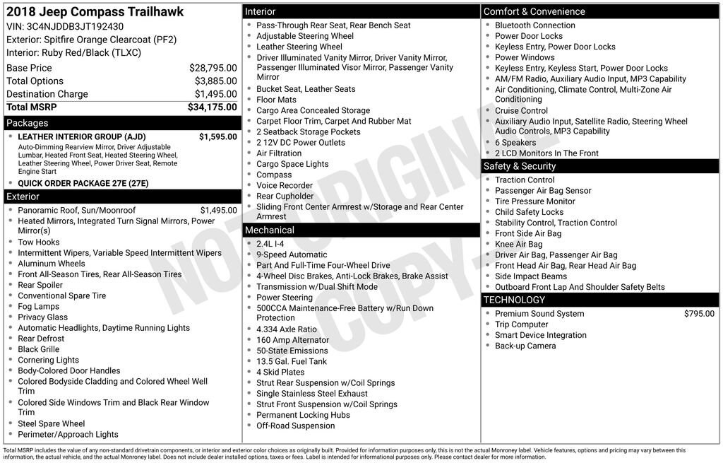 2018 Jeep Compass Trailhawk Trailhawk 4D Sport Utility 2.4L I4